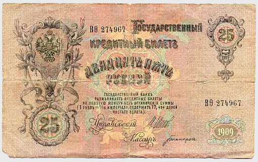 25 рублей - 1909 год