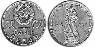 1965 г - 20 лет Победы над фашистской Германией (1 рубль)
