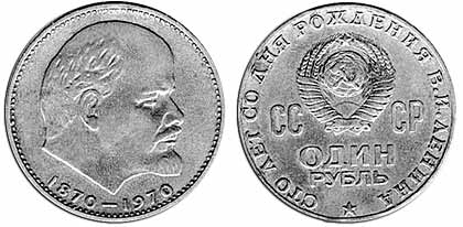 1970 г - 100 лет со дня рождения В.И.Ленина (1 рубль)