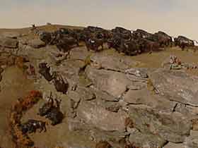 загоняя их к самому краю утеса, откуда бизоны падали с высоты вниз и разбивались