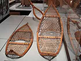 по глубокому снегу, используя snowshoes - снегоходы, искусно сплетенные