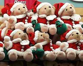 конфета - один из символов Рождества. Хотите? Вокруг разные игрушки, особенно много медведей - всяких-разных (люблю я мишек!) - некоторые одеты как Санта Клаус или просто в красных колпаках с белым помпоном. |
