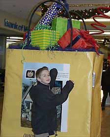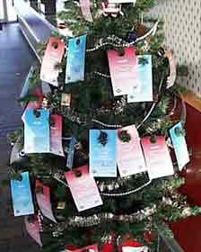 | Мы тоже решили принять участие в таком добром деле. Во многих кафе "Dairy Queen" стоят вот такие елки, а на них висят такие листочки, на которых написано "Мальчик, 11" или "Девочка, 5" - ты можешь выбрать, кому ты хочешь подарить свой подарок, принести его, прикрепить этот листочек и положить в ящик, стоящий рядом с елкой. | ||