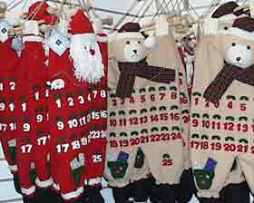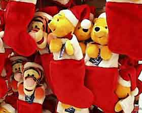 | "Рождественские календари" - рассчитанные с 1го декабря до самого Рождества - в каждом кармашке по конфетке (интересно, многие ли дети выдерживают и не съедают все сразу?) - ну и самые разные носки для подарков, которые принято вешать у камина - чтобы Санта, который, как известно, попадает в дом через каминную трубу, что-нибудь в них подарочное положил. У нас тоже висит один - хоть и не диснеевский - на камине. | ||