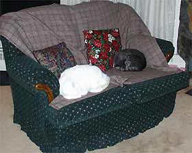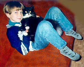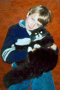 Даже нам порой от него "доставалось" - ведь когтищи у него были как иголки. У Саши после игры с Котой руки были частенько исцарапаны. И погладить его можно было не всегда, а только тогда, когда он сам этого хотел. Диван сбоку был им превращен в этакую "икебану" - композицию из ниток, поролона и выглядывающей из-под этого фанеры. Вот такой он был своеобразный и своенравный зверь. Но, конечно, мы его все равно любили, несмотря на его такую неуживчивость. Спал всегда у нас "в ногах". | |