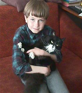 | Но характер у него был суровый. Когда к нам приходили гости, особенно незнакомые ему люди - он с них глаз не спускал и время от времени предупреждающе мяукал. Возможно, он воображал себя сторожевым котом и считал своим долгом охранять наш дом. Правда, это не всегда было удобно и нам, и гостям. Конечно, мы бы предпочли, чтобы он вел себя более дружелюбно. | ||