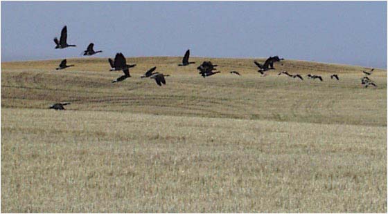 утром дикие гуси летят на сжатые поля вокруг Калгари, к полудню