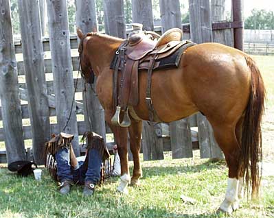 Усталый ковбой и его верный конь.