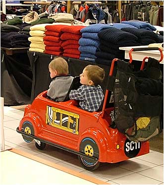 в крупных магазинах для них есть такие тележки-машинки (и не только).