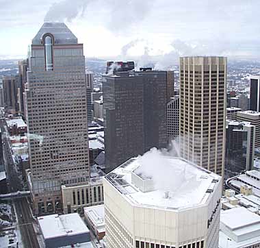Вид с Calgary Tower на западную часть даунтауна Калгари