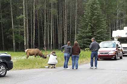 Про диких зверей. На дороге Bow Valley Parkway между Банффом и поворотом на озеро Lake Louise очень часто можно встретить больших оленей (elk). И не только.