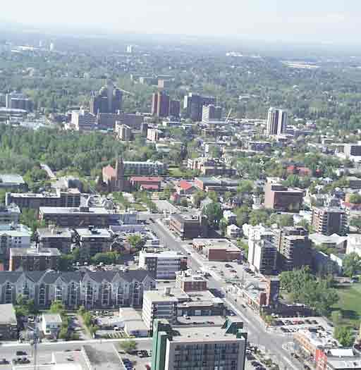 23 июня 2002 - Вид с башни Calgary Tower на юго-запад Калгари