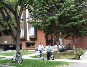 Квартира была на 2м этаже 4х-этажного дома, на тихой улице в районе Bridgeland, совсем недалеко от Downtown'а. 2 спальни, а гостиная вместе со столовой и кухней - без дверей между ними (сейчас мы к этому стандарту совсем привыкли, а сначала это было немного странно). Окна и балкон выходили во двор с высокими тополями и елями. После Владивостока, где высоких деревьев и так не очень много, да и к тому же мы жили там на 9м этаже - было очень приятно слышать шум листвы за окном. | |