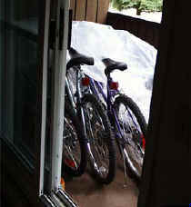 | Велосипеды мы поставили на балконе, а т.к. балкон был не очень высоко над землей - мы их поднимали и спускали с помощью веревки, что было удобнее, чем спускать по лестнице и протаскивать в двойные двери, которые надо было придерживать, чтобы не закрывались. | ||