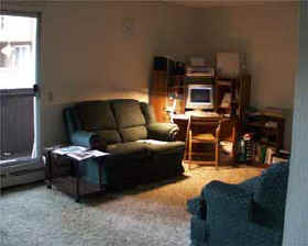 В аэропорту нас встретила наша канадская знакомая Elizabeth, с которой Володя познакомился в Internet'е. Первые несколько дней мы жили в доме у ее знакомых, и она здорово помогла нам - мы быстро оформили все необходимые бумаги, нашли квартиру, купили самую необходимую мебель, компьютер, кое-какие вещи и посуду - и через 4 дня мы уже смогли въехать в "свою" квартиру. |