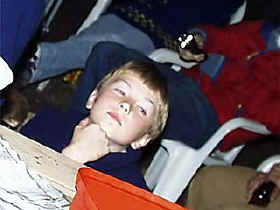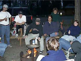 огня, в основном развлекаясь разговорами и питьем пива из банок, заедая