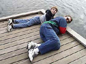 Очень Саше с Володей понравился маленький причал из досок, который был толстыми