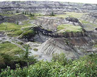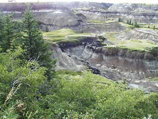 ![]() А внутри - настоящее доисторическое царство динозавров. В Альберте, непосредственно в этих местах, найдено великое множество очень хорошо сохранившихся их скелетов. |