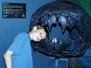 Такие вот миленькие челюсти какой-то доисторической рыбешки. Наверняка, у большей части посетителей сразу возникает мысль - засунуть туда голову. Не стали исключением и мы. Еще на нас произвели неизгладимое впечатление гигантские живые тараканы, - древнейшие насекомые, которые обитают в одной из витрин - какая гадость! |