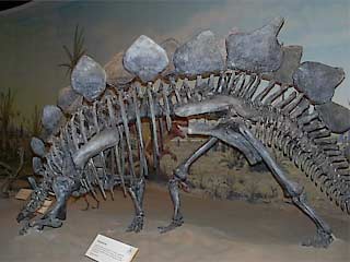 | Еще представитель - наверное, стегозавр, или то, что от него осталось. Вернее, точнейшая копия скелета - сам скелет находится в каком-нибудь институте. Кроме скелетов, есть и э-э-э... макеты? чучела? динозавров и других зверюшек в натуральную величину на соответствующем фоне. Много посетителей, много детей. Естественно, есть и сувенирный магазинчик с динозаврами во всех видах и из разных материалов - на долгую память о посещении этого динозаврового музея. | ![]() |