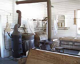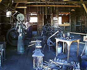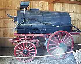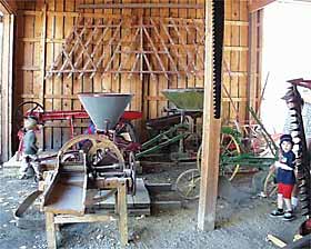 | Сарай с различными сельскохозяйственными машинами и механизмами (можно потрогать). Справа - настоящая водовозная бочка. | ||