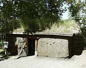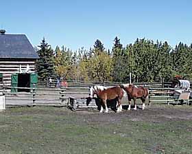 Слева - утлая землянка "первых пионеров-героев"- вот с чего начиналось канадское фермерство. А справа - ферма, лошади, конюшня - уже все как положено. |