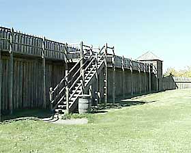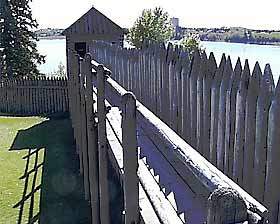 Вот такие стены из толстых заостренных бревен окружали форты в 1860-х годах, во время "fur trading", когда налаживался обмен и торговля шкурами ценных зверей с племенами здешних индейцев. "Высоко сижу, далеко гляжу". Между прочим, в Альберте столкновений с индейцами ни разу не было - все конфликты удавалось решить мирно. |