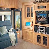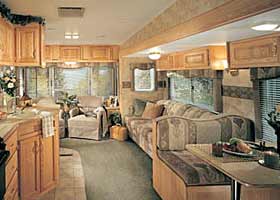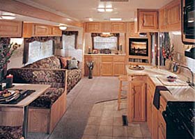 И оказалось, что никакому буржуйскому лимузину с этими фургонами не сравниться! Сверкающие "лимо" при всей своей кажущейся презентабельности-люкс рядом с трейлером просто бледнеют и меркнут, и кажутся даже еще более бесполезными. Потому что внутри трейлер - это просто дворец! Вилла на колесах! В нем предусмотрено все, что только можно пожелать - от кухни (с плитой, микроволновкой и холодильником), душа/туалета (ничуть не хуже, чем в доме ;-)) и спальни с кроватью queen-size, - до дополнительных супер-прибамбасов, которые вы уже можете выбрать по желанию сами