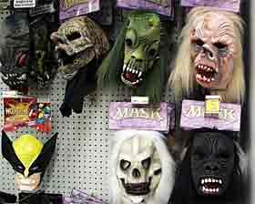 И надо сказать, выбрать было из чего (хотя я сама терпеть не могу некоторые натуралистически-ужасные маски - какие-то они все же противные (что, кстати, от них и требуется). Мне больше по душе что-то более смешное. Хотя и того, и другого там было более чем предостаточно. |