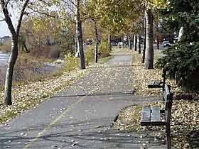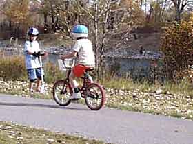 | Несмотря на то, что мне надо было бы сделать кое-что на компьютере и, в частности, я начала было даже изучать Dreamweaver по книжке из библиотеки, которую мне дали только на 2 недели - но погода за окном была такая теплая, безветренная, а прогнозы погоды на следующую неделю хотя и не очень ужасные, но и не радужные, - что я решила - надо проветриться, а тогда и учение гораздо быстрее пойдет (потом). Кстати, умению с удовольствием отдыхать в выходные нам стоит поучиться у канадцев, потому что мы этого делать не умеем - всегда остаются какие-то дела, которые приходится делать (или же мучит совесть, если не делаем - а в выходные надо отдыхать! - и все!) В общем, оседлав своего железного коня, я поехала в парк (вернее сказать, это о-очень длинные аллеи - дорожки вдоль реки Bow River, по которым можно ехать и ехать). | ||