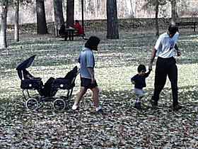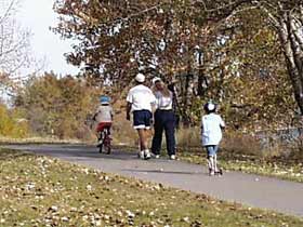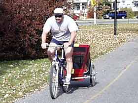 | Народу там было много. Кто просто на велосипеде, кто - прицепив к нему сзади коляску с младшим членом семьи (или двумя), причем эти пассажиры должны быть обязательно в шлемах; есть еще такие прицепы, что ребенок тоже крутит педали и едет за взрослым; кто на роликах катит коляску с ребенком; кто на скейтборде с собакой; кто бегом с плэйером в кармане и в наушниках; кто просто пешком быстрым или медленным шагом - и это все в различных сочетаниях и количествах, различных возрастов и размеров. | ||