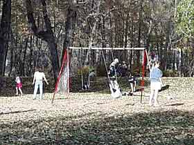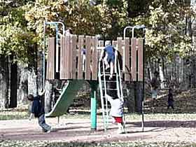 | А народ в парке в это время отдыхал кто как хотел - дети карабкались на горку вверх и съезжали вниз, весело раскачивались на качелях сами или с помощью родителей... | ||
