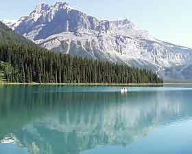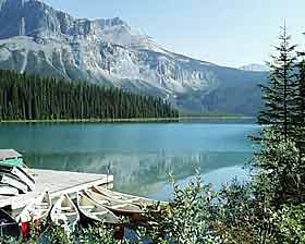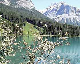 | Одна из признанных жемчужин Канадских Скалистых Гор - горное озеро Emerald Lake ("изумрудное"). В тот день оно было особенно красиво, потому что не было ветра, и можно было увидеть четкое отражение гор и неба в его прозрачной и, действительно, изумрудной воде. Оно небольшое - чтобы обойти его вокруг, нужно пройти 5,2 км. | ||||