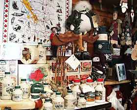 В маленьком уютном магазинчике сувениров (который одновременно является и пунктом проката лодок) можно найти много интересных и очень "канадских" вещей: кленовый сироп в баночках и кувшинчиках, индейские украшения из бус и перьев, походные палки с бубенцами (чтобы отпугивать медведей, у которых сейчас как раз сезон сбора ягод), мохнатых игрушечных мишек, бобров и лосей, куртки и майки с эмблемами парка и Канады, значки, открытки, календари, и многое другое... | |||