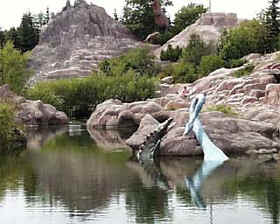 | В один из первых наших походов мы отправились в зоопарк - или Calgary Zoo. Тем более, что он находится недалеко от района, где мы поселились. Мы поехали на велосипедах, но так как в зоопарке нельзя ездить ни на велосипедах, ни на роликах - мы припарковали их рядом с другими на автостоянке перед воротами. Билет в зоопарк для взрослого $10, для ребенка, кажется, $6 или $7, для совсем малышей - бесплатно. | ||