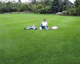 | Очень нам понравилась эта огромная лужайка. В то время мы еще не привыкли к таким, и потому как-то не очень верилось, что по ней можно не только ходить, но и сидеть, лежать, кувыркаться на траве и стоять на голове (хотя два последних мы не пробовали). | ||